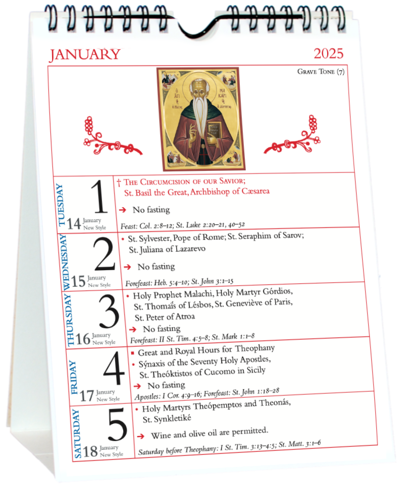 The 2025 Calendar of the Church of the Genuine Orthodox Christians of America